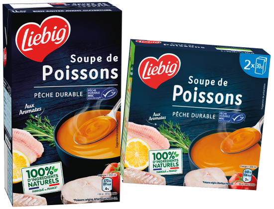 Envie d’une recette maritime ? Notre Soupe de Poissons labellisée MSC est là pour vous ! Les cuisiniers Liebig ont sélectionné de délicieux poissons issus de la pêche durable et les ont agrémentés d’un filet d’huile d’olive, d’ail, de tomates et d’oignons. Ces associations vous permettront de retrouver tout le bon goût et les bienfaits de la Soupe de Poissons aux Aromates.